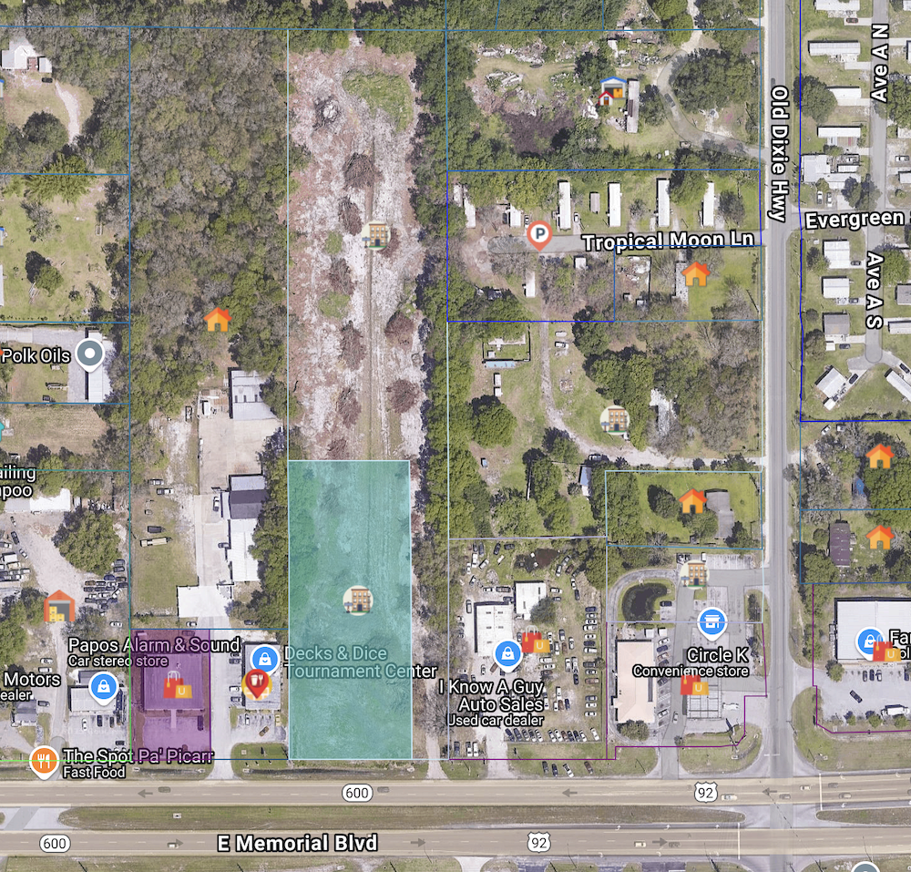 This 1.6-acre vacant parcel is strategically positioned along US Highway 92 East, just east of downtown Lakeland and outside the city limits within unincorporated Polk County. The property offers approximately 200 feet of direct highway frontage, providing excellent visibility, access, and traffic exposure.